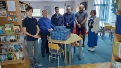 Gradonačelnik Josip Mišković sa zamjenikom Lovrom Miklaužićem jučer je prigodno nagradio učenika Osnovne škole Popovača Ivana Prikratkog, državnog prvaka iz informatike. Kao nagradu