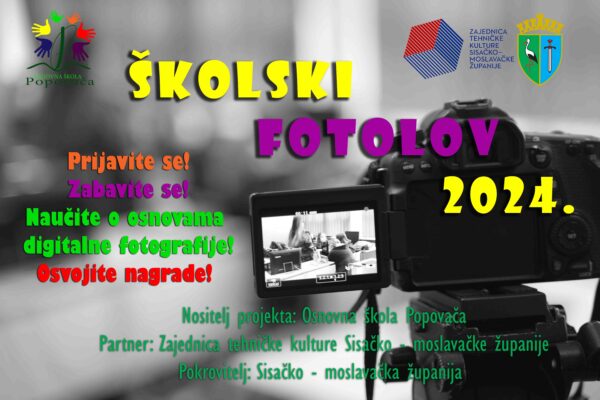 Osnovna škola Popovača Vas poziva da se uključite u projekt Školski fotolov 2024. Na projekt se mogu prijaviti osnovne škole Sisačko – moslavačke županije.